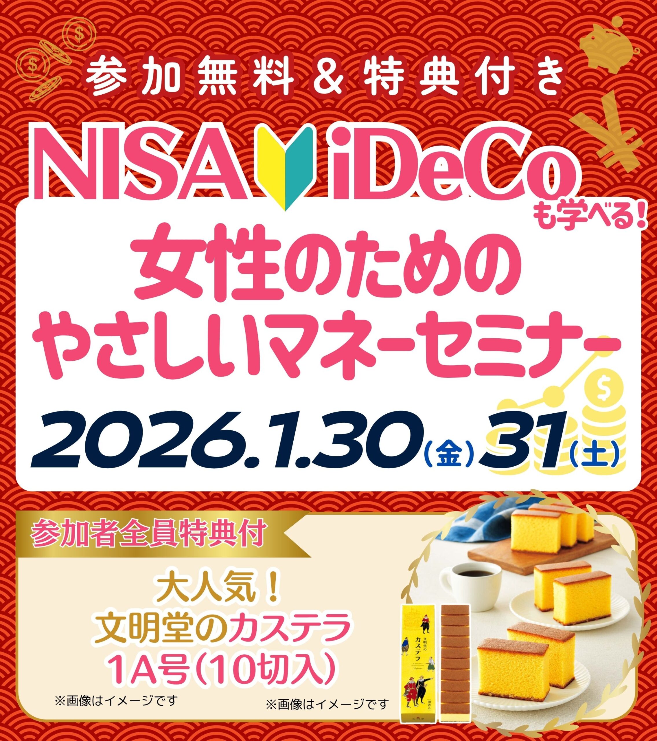 - 【藤沢1月開催】NISA・iDeCoも学べる!女性のためのはじめてのマネーセミナー