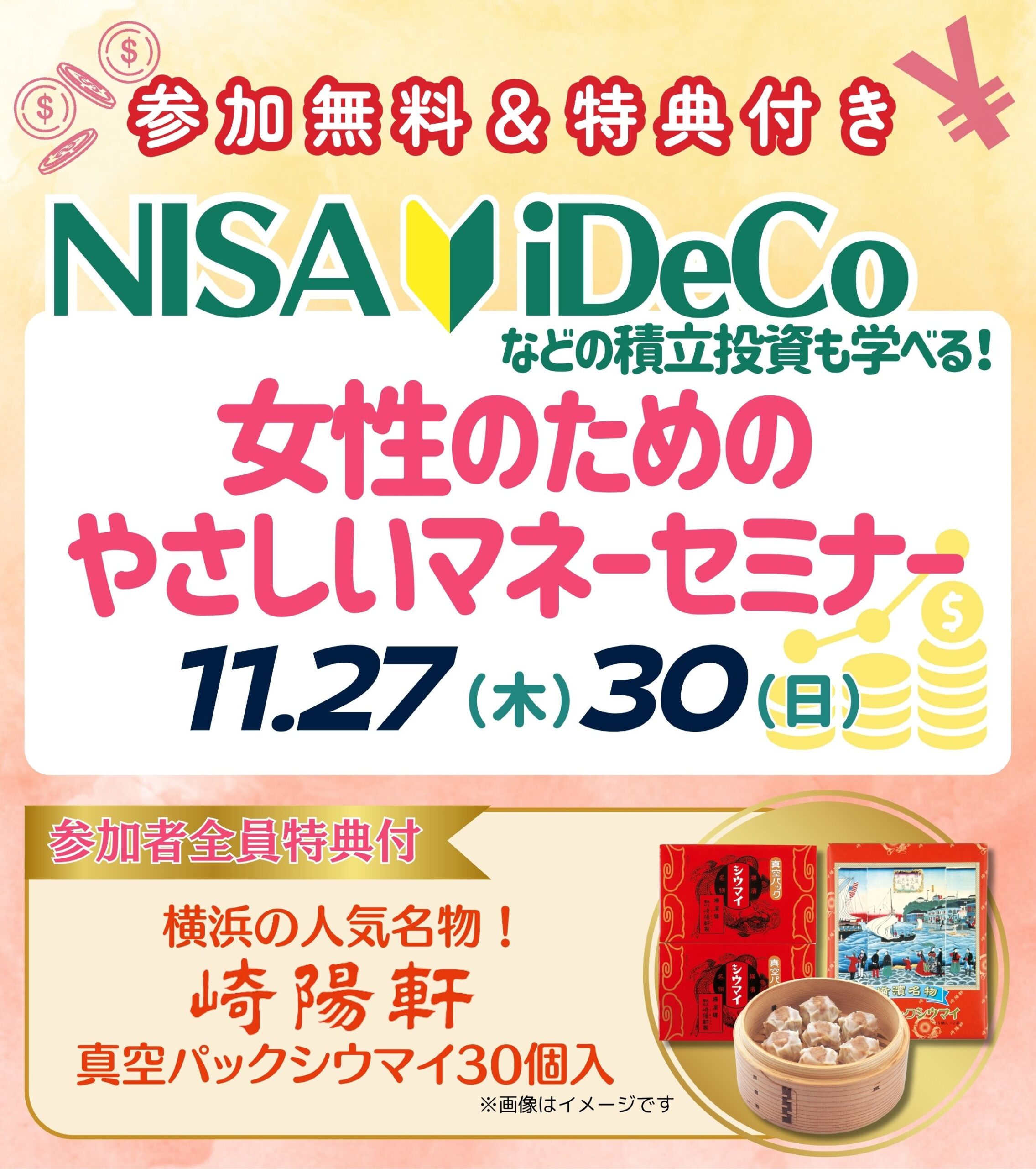 - 【平塚市11月開催】NISA・iDeCoも学べる!女性のためのはじめてのマネーセミナー